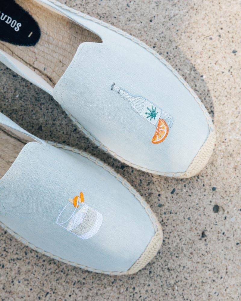 We took our signature platform espadrille silhouette and embroidered one of our favorite beverages on it: Mezcal. These are also crafted from tencel cotton, a super soft and more sustainable option than traditional cotton (did you know tencel is harvested from the pulp of eucalyptus trees?!). P.S. Every Soludos espadrille features traditional blanket stitches that have enough give to mold to your foot. They may feel snug at first but after the first wear, they will stretch for a custom-like fit.